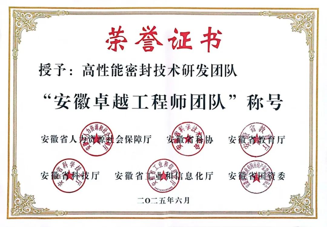 近日,首届安徽省“安徽工程师奖”评选结果揭晓,安徽中鼎密封件股份有限公司高性能密封技术研发团队荣获团队奖,被授予“安徽卓越工程师团队”称号。